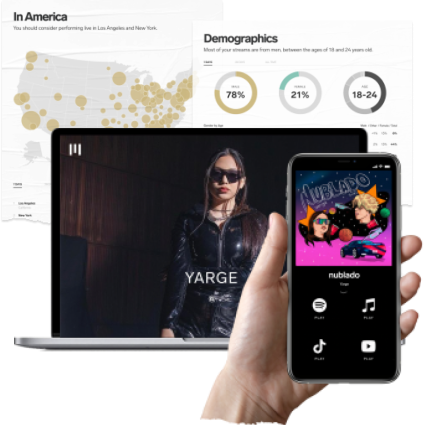 Publica tanta música como quieras, cuando quieras, en las plataformas de streaming más importantes y rastrea tu desempeño con estadísticas avanzadas.